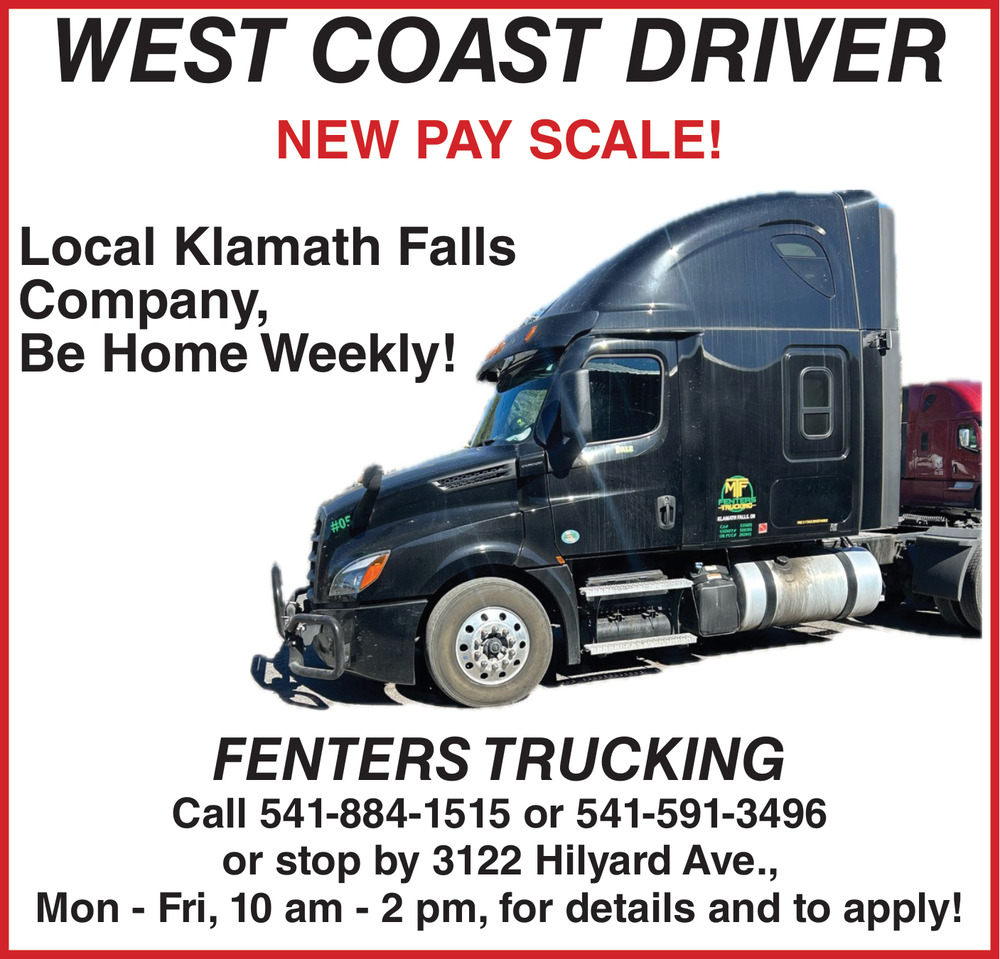 Oct 04, 2025. Fenters Trucking Drivers Jobs from Klamath Falls Jobs