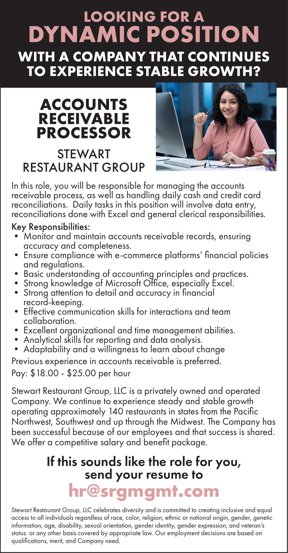 Oct 08, 2025. Stewart Restaurant Group, LLC Accounting/Financial Jobs from Klamath Falls Jobs