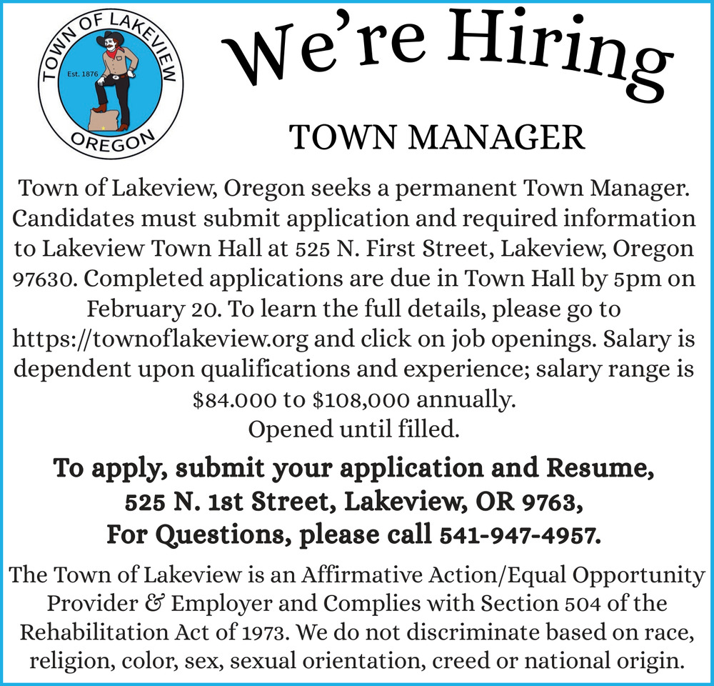 Town Manager Job Opening in Lakeview, OR