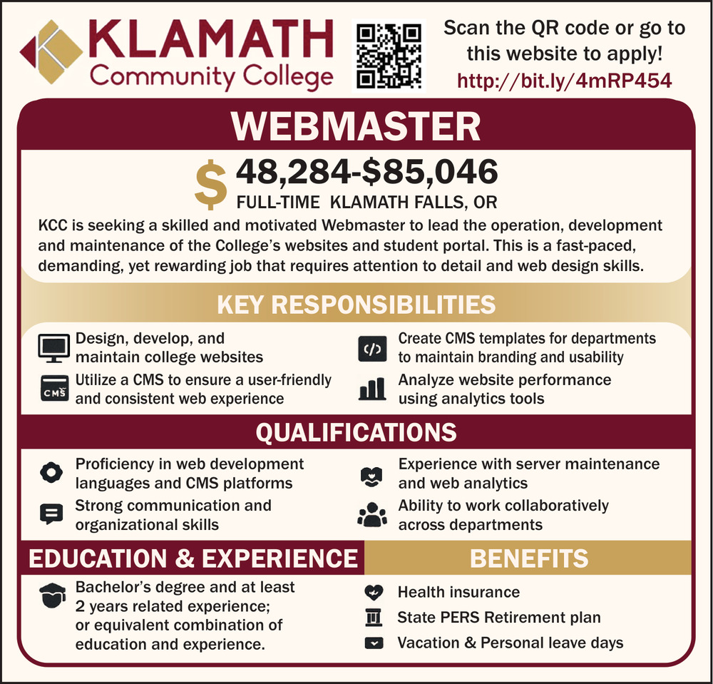 Webmaster Job Opening in Klamath Falls, OR